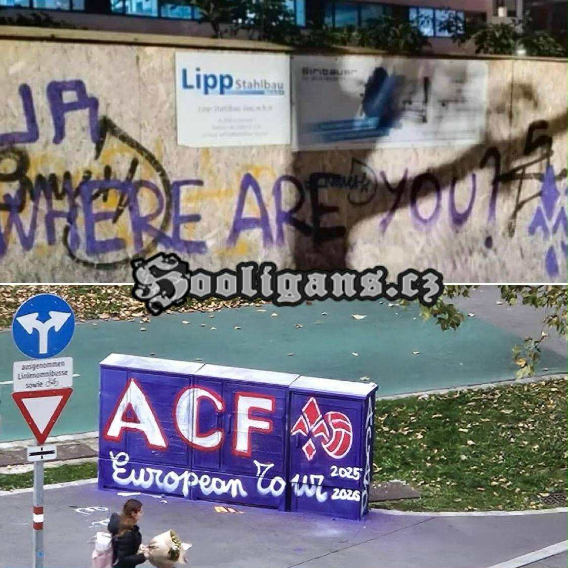 350 Fiorentina hools walk through Vienna last night before match. Fiorentina make graffiti with the message “Where are you!”