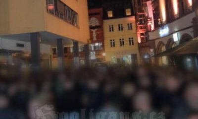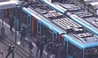 After match, ~50 Eintracht attacked ~150 Ultras Mostar on the train after the match,...