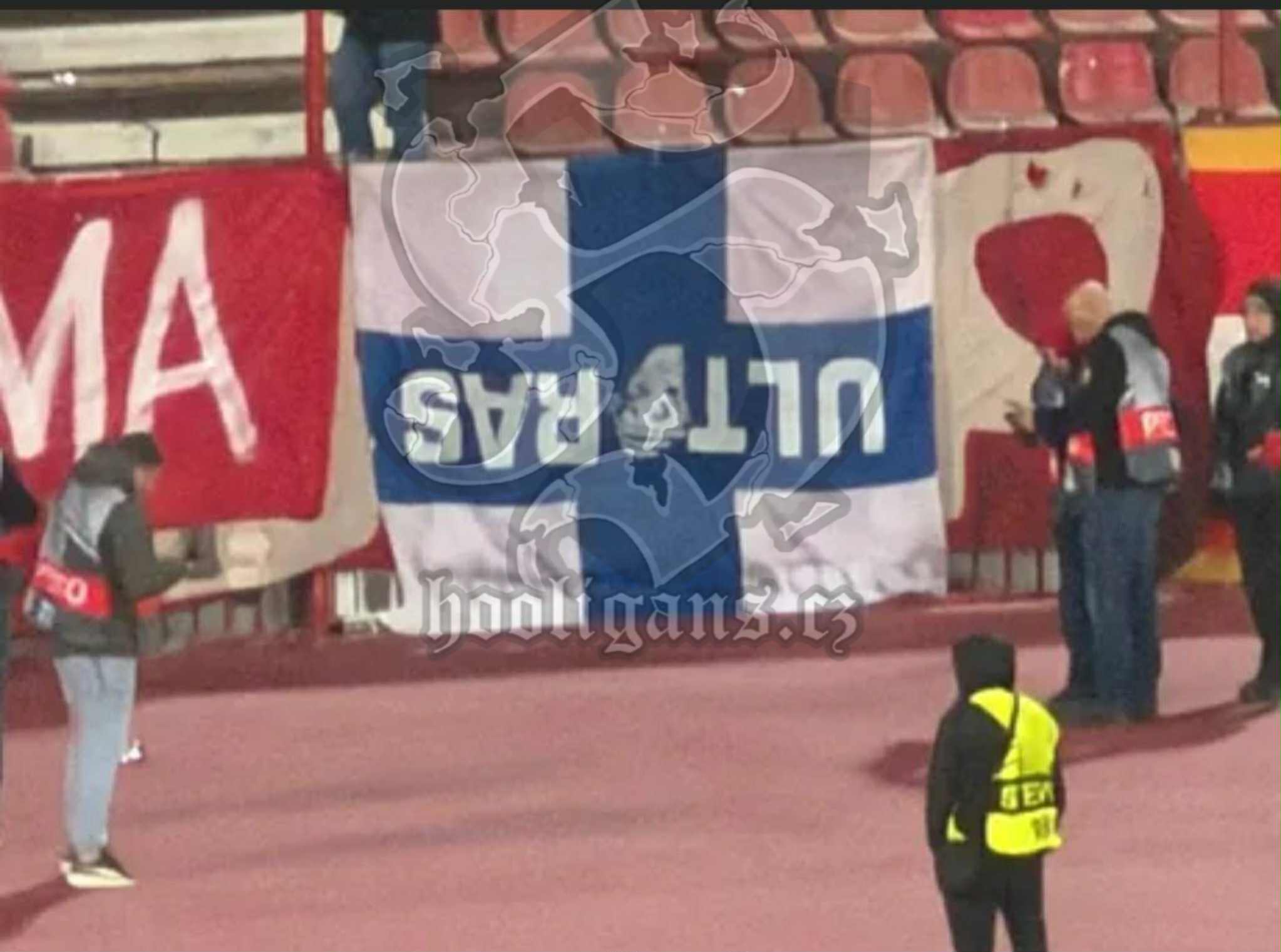 Delije with stolem flag Olympique Marseille in match against Lille